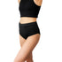 - The protective black built in period panel comes all the way up to the front and back waistband to manage periods while you sleep or to handle gushes when siting.